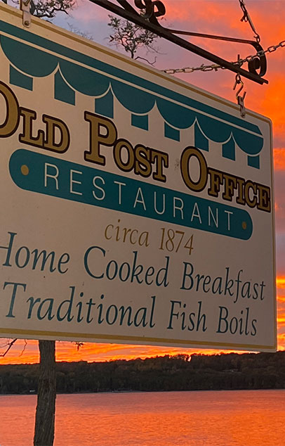 Overlooking beautiful Eagle Harbor. Enjoy a Door County fish boil in our historic setting. Featuring fresh whitefish (chicken and ribs available), potatoes, onions, coleslaw, homemade breads and cherry pie. Fish boils are served Monday through Saturday, reservations requested. Now offering craft beer and select wine. Homemade breakfasts served daily, featuring cherry and blueberry pancakes, fluffy omelets, Belgian waffles, homemade coffeecake and cherry muffins. Open May through October. Outdoor patio seating available.