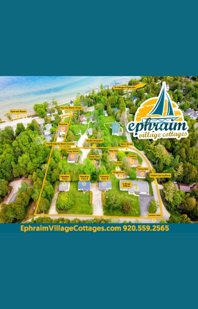 Star-filled nights and mornings filled with fresh, clean air await you at family owned, Ephraim Village Cottages, a three-acre property with 12 fully equipped, 1-3 bedroom cottages in the heart of Ephraim, Wisconsin. Take a 2-minute walk to the beach, a five-minute walk to restaurants, coffee and pastries, and a 10-minute walk to the heart of the Village for a fish boil, ice cream, museums and shoppes. Each cottage includes all the comforts of home from seating for the whole family, high speed internet, heat/air, cable TV, a fireplace (in most), charcoal grill, picnic table, deck and lawn chairs. Our property boasts plenty of green grass, a huge wood burning firepit, hammocks, cornhole/bags, badminton, beach ball, bocce ball, frisbees and playground. We are dog friendly (max 1 or 2 depending on cottage). Come Make Memories that Last a Lifetime. Open May – October. Read our reviews on Facebook, Google, TripAdvisor.